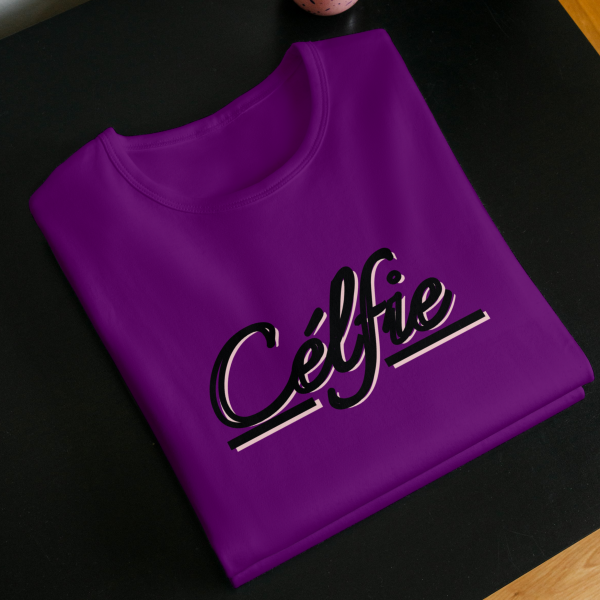 - A super comfortable Tee Shirt, with “Celfie” printed on the front, is a great go to outfit, perfect to be worn on its own for casual hangouts, lounging, running or for layering under jackets or coats and stuff.