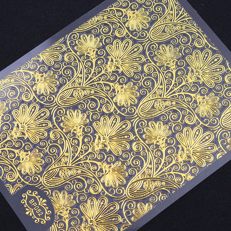 Golden Embossed Blooming Flower Pattern Nail Sticker Sheet