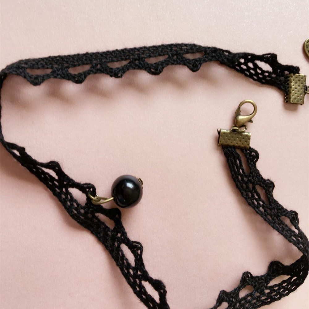 - An imitation, synthetic pearl is hanging from the middle of the lace necklace. The pearl is made of good quality material and gives the necklace an ultra boho chic look.